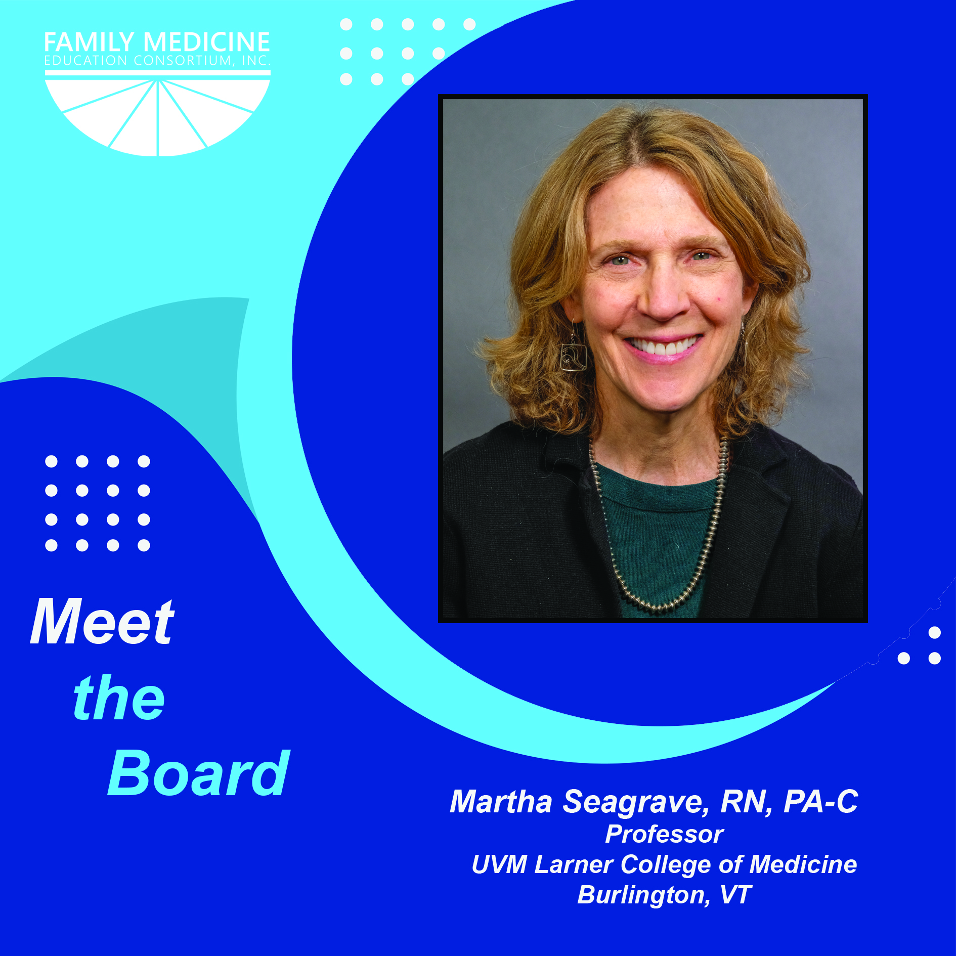 Martha is a Professor at the UVM Larner College of Medicine and serves as Director of Medical Student Programs in Family Medicine. She has presented regionally and nationally on topics from novel approaches to curricula, care of challenged populations and more recently on AI in Medical Education. She remains steadfastly committed to rural primary care and increasing the family medicine workforce. She has been an active member of FMEC for many years, bringing many students to the Annual Meeting where she has seen their passion for Family Medicine grow. It is her greatest sense of pride when her students comment that attendance at FMEC was a pivotal moment in their career development. She has served as a reviewer on the Planning Committee since 2010 and has served on the Host Committee and joined the Board of Trustees in 2022. As a health educator, Physician Assistant and Registered Nurse, she appreciates the opportunity to work with such a collaborative and motivated organization. Her clinical site is in Student Health where she provides comprehensive health care to students and enjoys working with students to optimize their physical and mental health and self-confidence.
