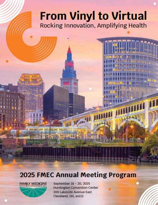 | 2025 FMEC Annual Meeting - From Vinyl to Virtual Rocking Innovation, Amplifying Health Thank you for joining us in Cleveland! Thank you to all the students, residents and faculty who joined us in Cleveland for the FMEC 2025 Annual Meeting! And special thanks to the 2025 Annual Meeting Host Committee as well as the FMEC Planning Committee who put the meeting together. View the daily emails! 9/18/2025 09/19/2025 09/20/2025 The AAFP has deemed the 2025 FMEC Annual Meeting acceptable
